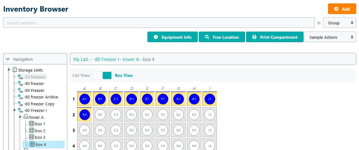 - Storage location – the location (or starting location within a box) where the samples will be stored