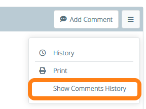 Comments can also be made on signed experiments. Click the Add Comment button to create a comment. You can view a section's comment history by opening its context menu and clicking Show Comments History.