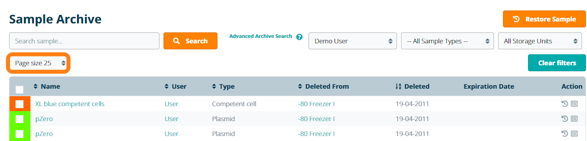 Use the Page size filter to increase the list's page size by up to 200 samples.